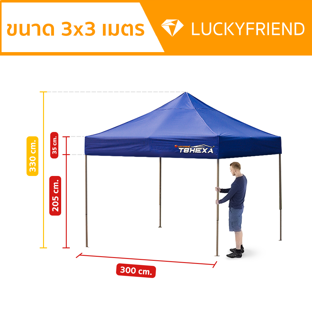 T8HEXA 2x2 เมตร Luckyfriend พรีเมี่ยม เต็นท์พับ